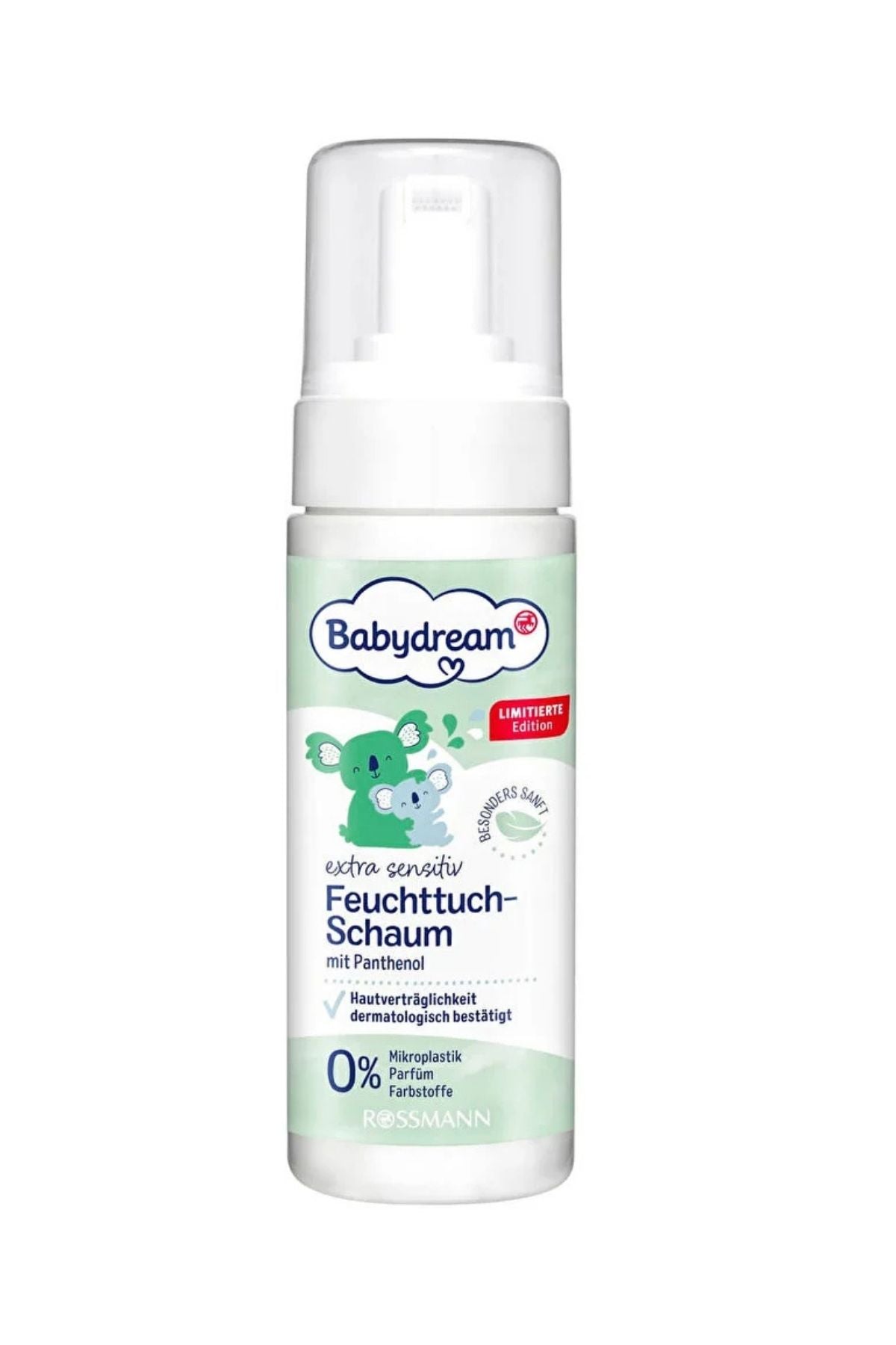 Pantenol içeren Babydream ıslak mendil köpüğü bebeğin cildini nazikçe temizler. Cilde uygunluğu dermatolojik olarak onaylanmıştır. Vegan üründür. pH ciltle uyumludur. Şişe %98 geri dönüştürülmüş plastikten üretilmiştir.