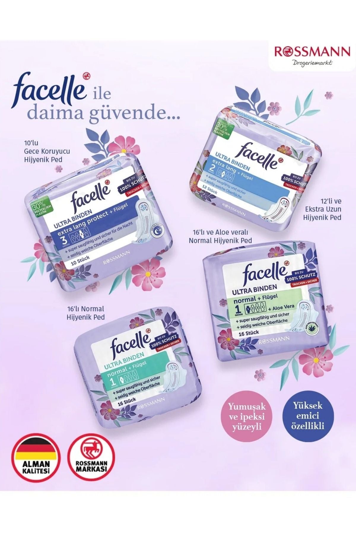 Anatomik yapısı ve kanatları sayesinde konforlu bir kullanım sağlar. Yumuşak, ipeksi yüzeye sahiptir. Tekli ambalajı sayesinde pratik ve hijyeniktir. Sıvıyı içine hapseden yapısı sayesinde kendinizi ekstra güvende hissettirir. Boyutlar: Uzunluk: 23 cm. Genişlik: 10 cm. Kalınlık: 1,8 mm.