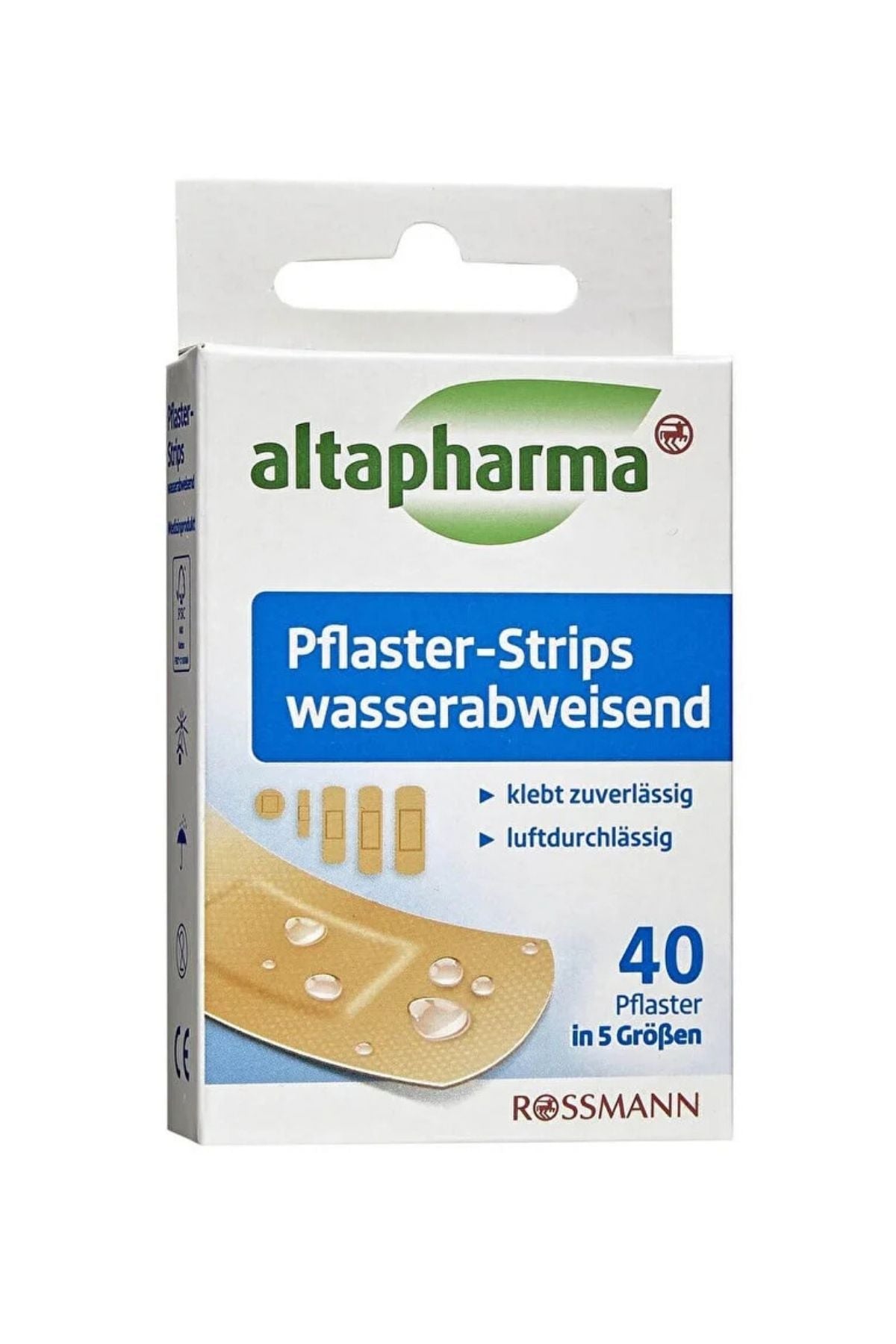 Altapharma şerit yara bandı ekstra kalıcı yapışma özelliği ile su ve kir geçirmez özellikli olarak tasarlanmıştır.Yara bantları kolayca şeffaf koruyucu filminden ayrılır ve hava geçirgen özelliğe sahiptir.